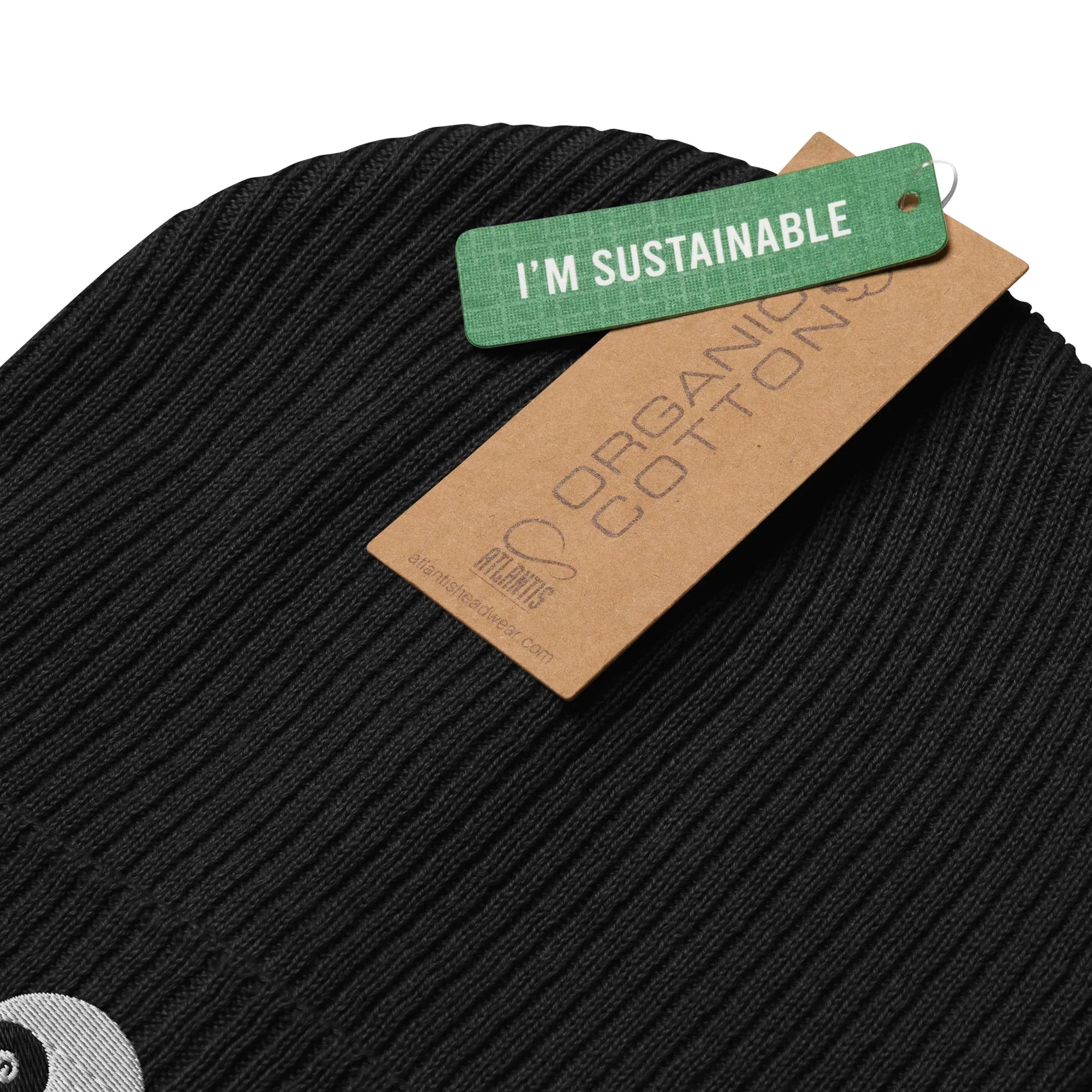 5preview Organic Ribbed Beanie Black with organic cotton and I'm sustainable tags