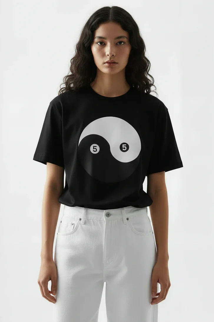 The traditional dots are replaced by the number 5, a core element of our logo, turning a universal symbol of balance into a personal one. Light and dark, order and tension, individuality and system coexist in a single mark.